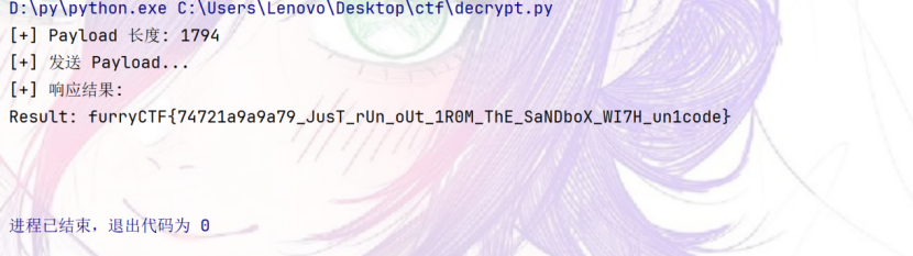 1 | furryCTF{74721a9a9a79_JusT_rUn_oUt_1R0M_ThE_SaNDboX_WI7H_un1code} |