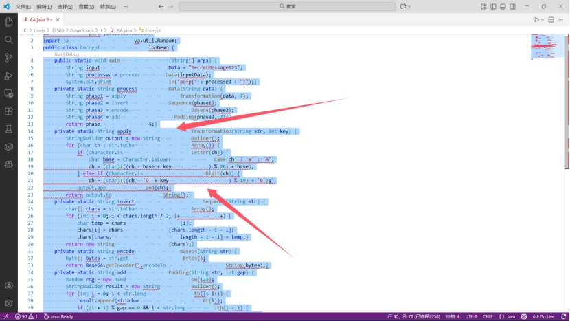 一开始以为是修复Java文件,运行,就能输出flag,修复之后,输出的flag是错的。后来问了一下ai,原来是二进制解码,把Java文件中间的空格换成0,Tab换成1,然后二进制转字符,获得flag