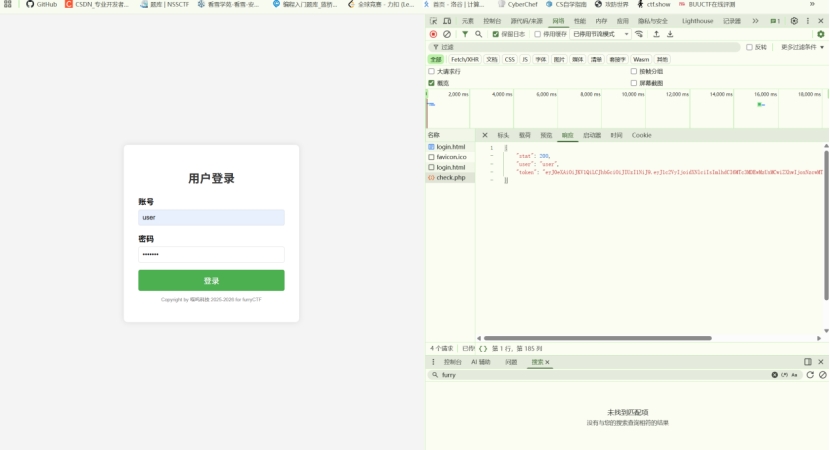 这题你一开始先把你的user账号和密码输进去通过check.php拿到你自己的token.