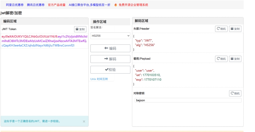 要改token就需要jwt了,这里贴个修改网址:https://www.bejson.com/jwt/