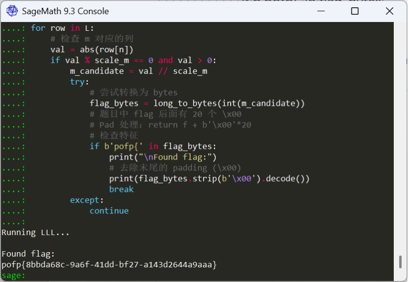 所以第一步我们的目标是还原X,下面是sagemath脚本: