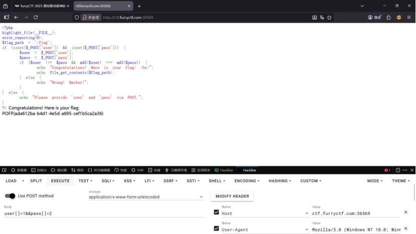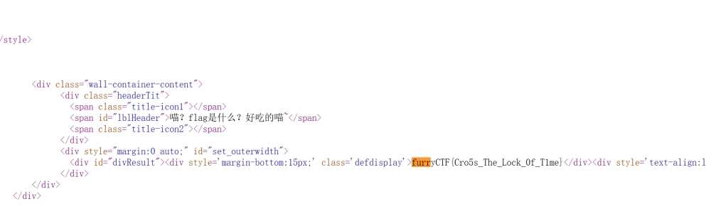 所以就直接ctrl+u看源码,按ctrl+f搜索furryCTF就可以看到flag: