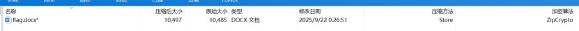 打开压缩包,发现加密算法ZipCrypto,压缩方法是store,可以想到是明文攻击。
