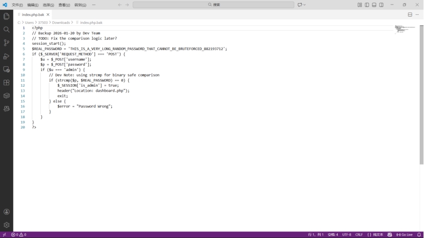 Hey bro, don’t forget to remove this before release!!!,然后你再看flag的逻辑,没删就说明漏洞在这里: