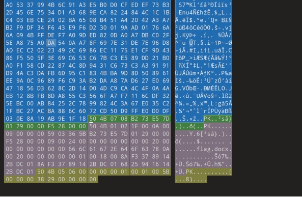 1 | bkcrack -c 提取的压缩包数据.zip -p 提取单docx文件头.bin |
